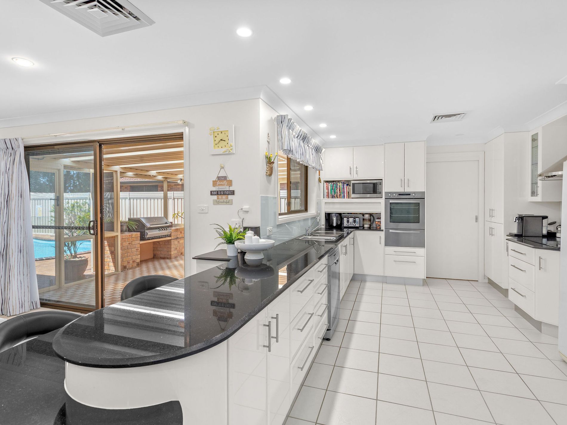 From the moment you step onto the neat front lawn and through the double-door entry, you're greeted with warmth, space, and light. The layout flows effortlessly, with two generous living areas, a formal lounge with a bar, and a spacious open-plan kitchen that anchors the home. The kitchen blends practicality with warmth, offering generous bench space, quality appliances and plenty of room to gather, create and enjoy everyday moments together.