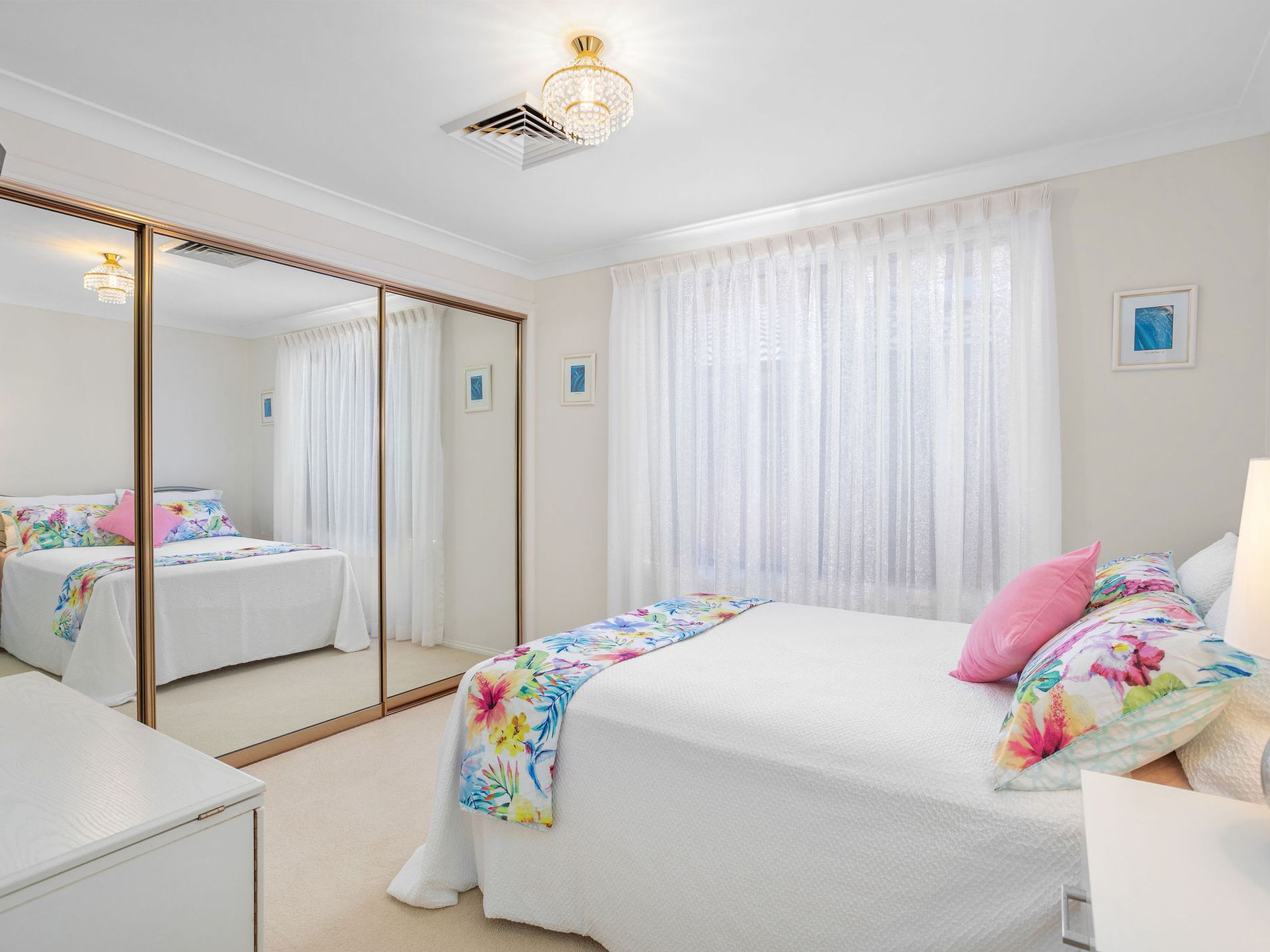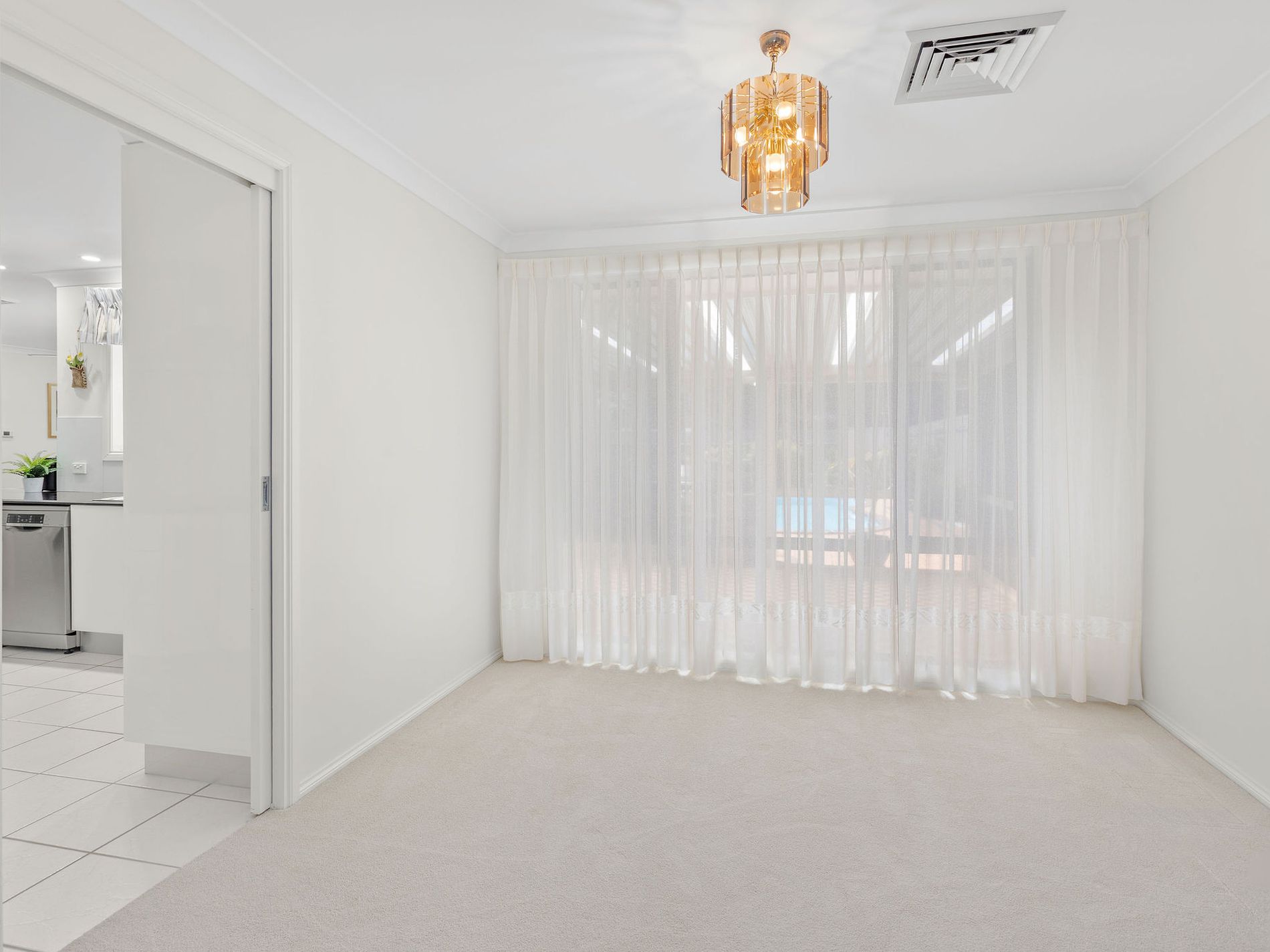 The floorplan offers wonderful flexibility, with three generous bedrooms designed to suit families, couples or downsizers alike. Two of the bedrooms include built-in robes and are finished with plush carpet and soft window furnishings. The master suite is privately positioned and features a walk-in robe and a light-filled ensuite, creating a calm space to retreat and recharge. Every room feels light and fresh, with ducted air-conditioning for year-round comfort and plenty of natural light streaming through sheer curtains.